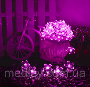 Светодиодная гирлянда на солнечной батарее Лютики розовый 7м 50Led